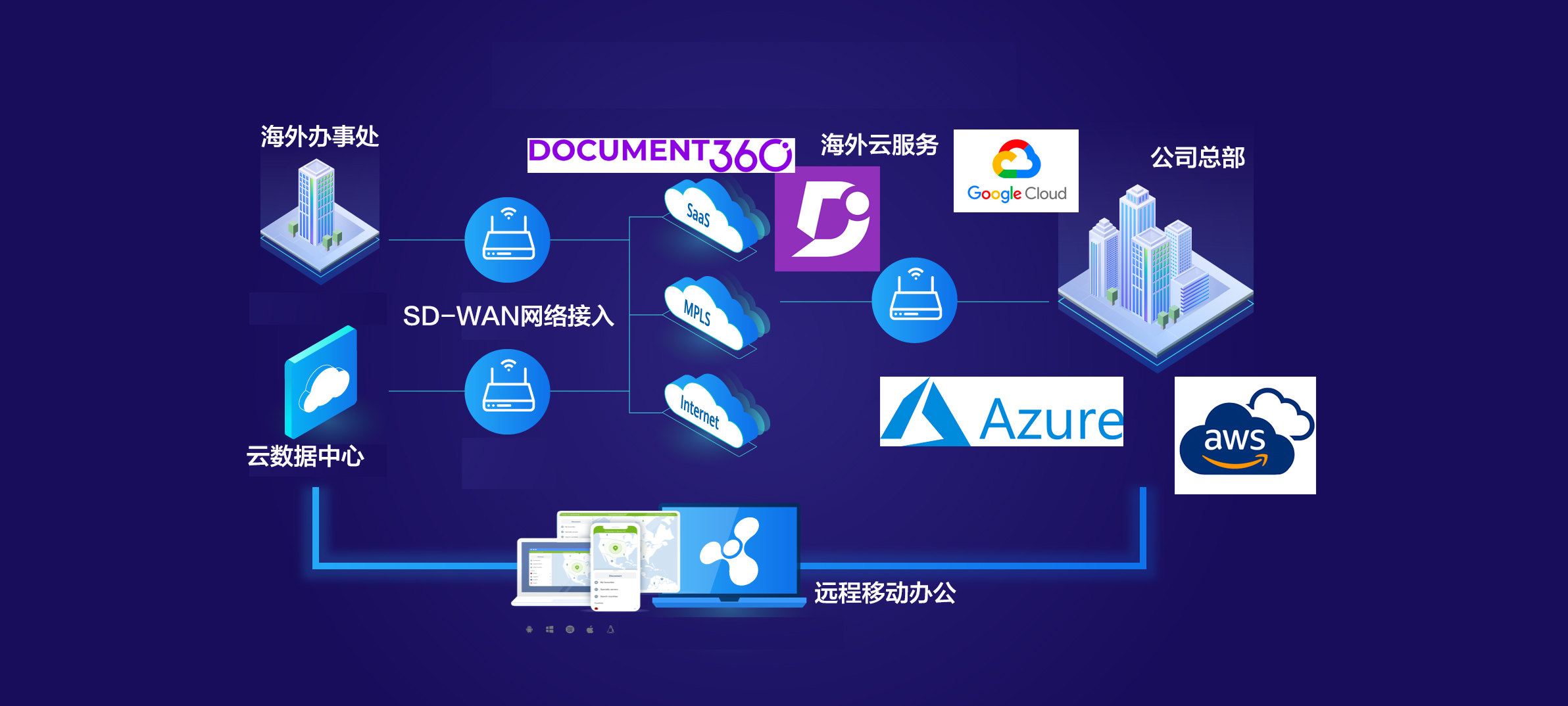 孚塔云网 国际云专线(Flota-Link)具有全球传输交付能力,一周之内开通业务,全程零配置。提供一揽子端到端的传输解决方案,即刻构建一张稳定可靠的SD-WAN专网,投入使用。