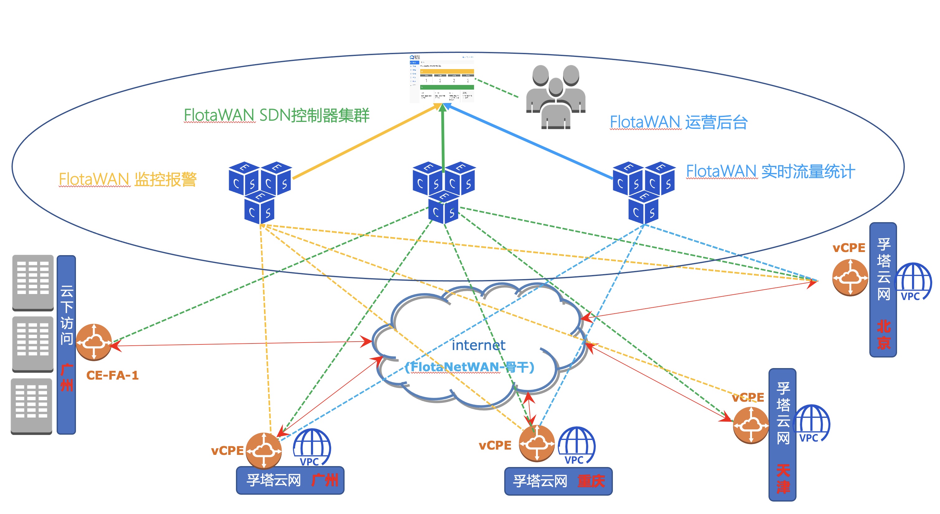 利用孚塔云网的边缘节点接入互联网访问请求,利用骨干网络传输,加速位于用户自有数据中心的SaaS服务。