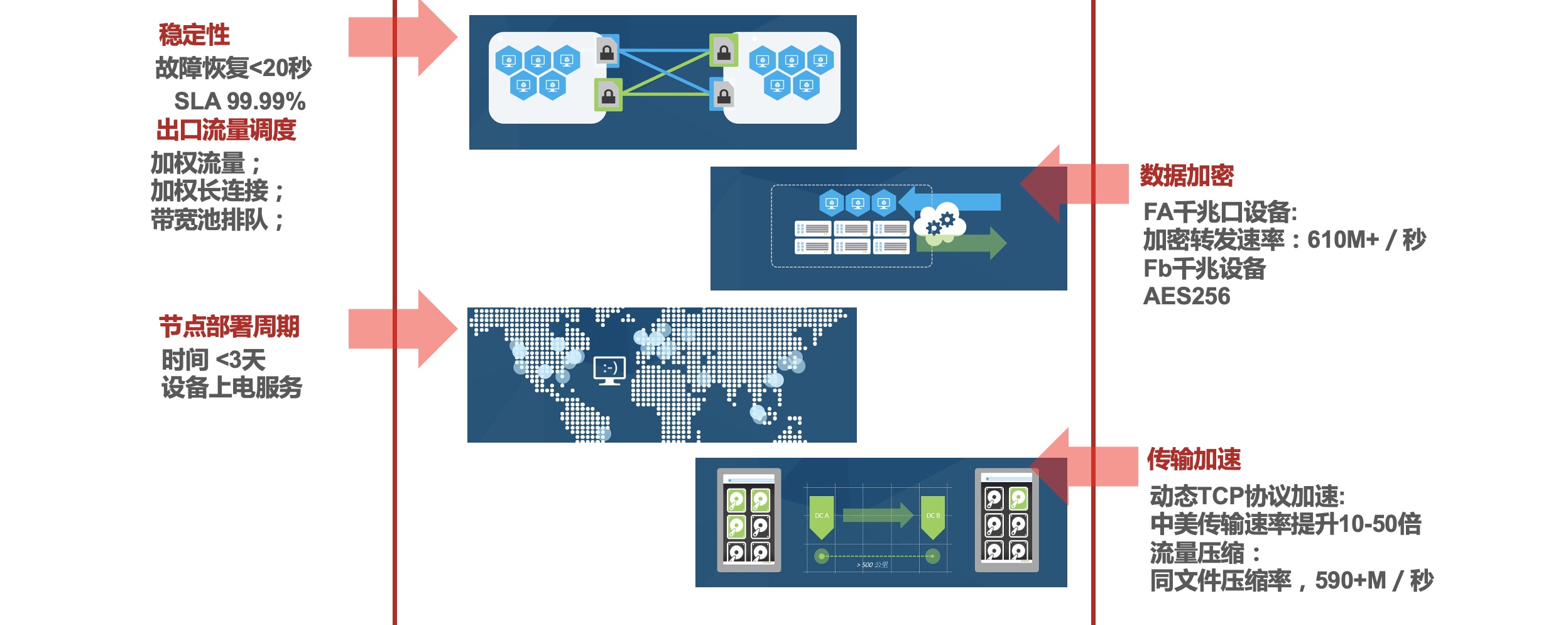 自动采集分析全网的流量质量和地理链路属性,反馈至中心调度节点自动化分配最优接入路径,实时优化,绕开拥堵路径,服务稳定运行在全局网络最优状态。